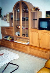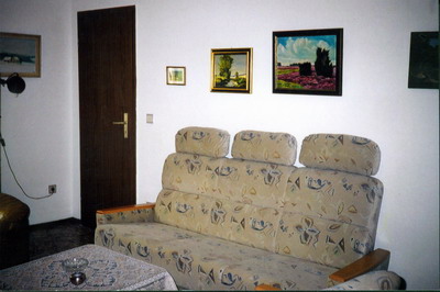 außerdem: 2 große Sessel (jeder kann problemlos leicht als zusätzliches Schlafbett umgebaut werden). Stehlampe, Stereo-Radio-Recorder mit CD. (Fernsehanschluss für Fernsehgerät - s. Schlafzimmer - ist im Wohnbereich vorhanden.)
