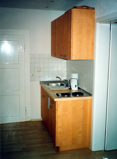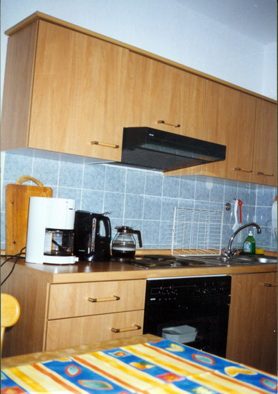 Küche: Küchenzeile komplett eingerichtet, Herd mit 4 Kochplatten und Backofen, Geschirr für 6 bis 9 Personen, Kaffeemaschine, Wasserkocher, Thermoskanne, Toaster, Kühlschrank mit Tiefkühlfach, Kofferradio mit Kassettenteil u. m. In der Küche befindet sich eine gemütliche Eckbankgruppe mit Blick zum Ochsenkopf.